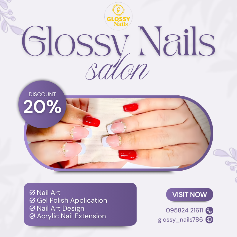 Glossy Nails is a premium nail salon in Greater Noida, offering stylish, hygienic, and long-lasting nail services for women who love perfectly groomed nails. We specialize in gel nails, acrylic nails, nail extensions, custom nail art, and nail spa tr...